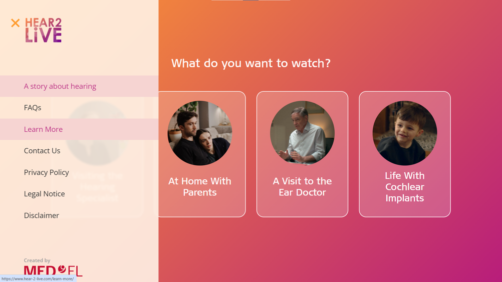 Hear2Live is an emotional and informative story about little Oliver and his parents who seek a hearing solution for their son. This engaging and interactive journey form being deaf to having cochlear implants in two ears will help parents and care givers to understand the symptoms of hearing loss, steps and decisions to be taken, and the benefits of living and hearing with cochlear implants.